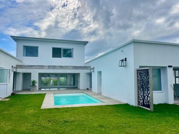Right on top of the hill with panoramic views. This newly renovated double storey home has everything in place for easy living at the coast. Perfect design with large entertainment areas and North and West facing light which will allow you to enjoy all the seasons of the year. The ground floor has 4 bedrooms ensuite, one of which has its own entrance and could serve as an office or flatlet for family or friends. The main ensuite has a tub overlooking the private garden as well as its own entrance. The kitchen has been revamped and has granite tops, gas hob and its own pantry. The living room's main feature is a wood burning oven optimally placed to maximise warmth in winter. The staircase leads up to the 5th bedroom ensuite and spacious study or second entertainment area with guest WC, library or TV room attached. The views are breathtaking and the perfect space to chill or work. Furthermore, there are also ceiling fans and a separate laundry and outside office or storage room as well as a double garage, a double covered carport and a single carport with its own driveway and space for extra vehicles or a boat. Automated garage, gates and electric fencing in place. This lovely home on the hill has clean lines and inviting finishes. Call for a viewing of this exceptionally well priced home in Plettenberg Bay.